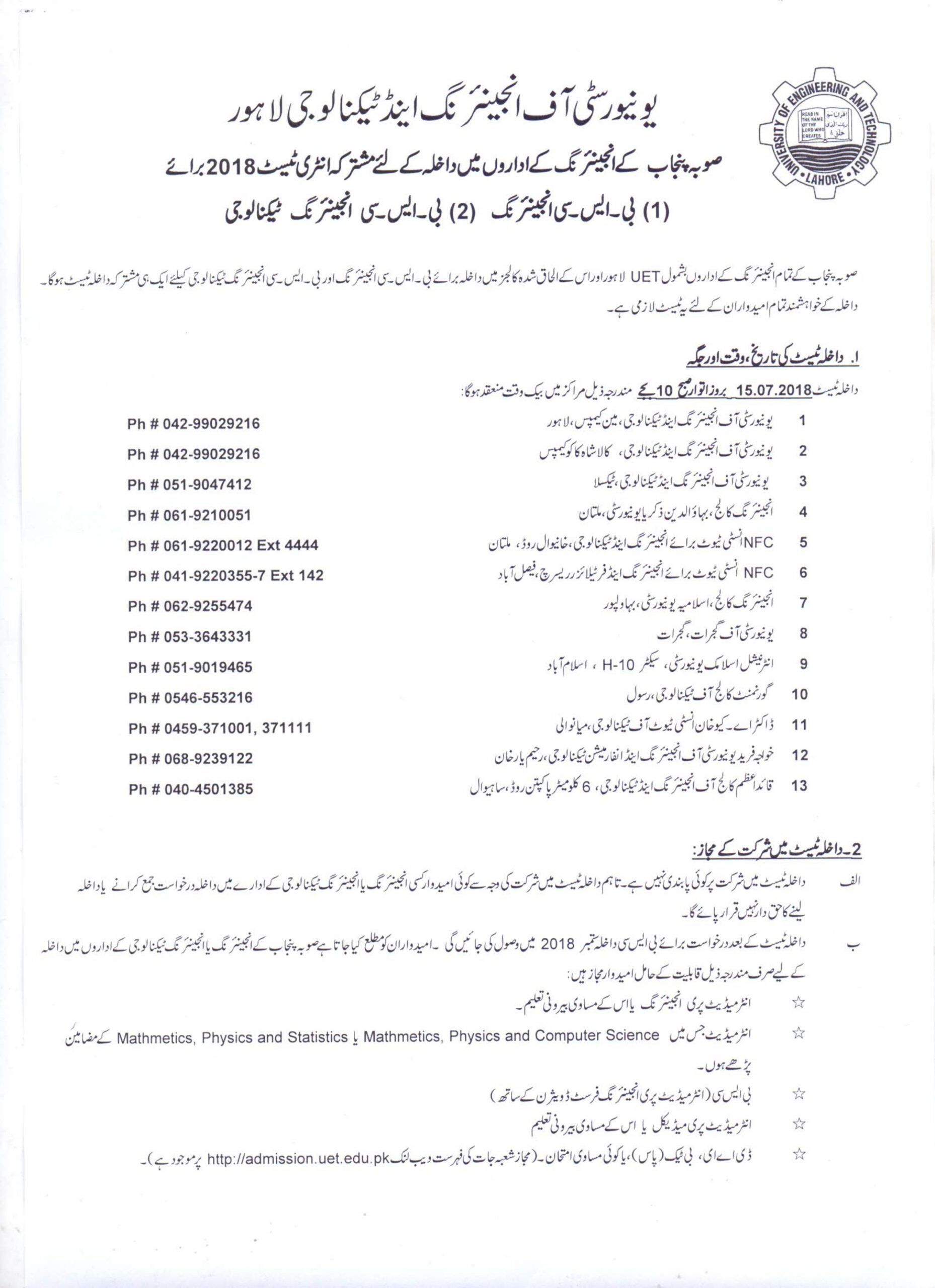 AdmissionsUniversity of Engineering & Technology Lahore Entry Test 2021 11 April 2021585FacebookTwitterPinterestWhatsApp Share to your communityShare