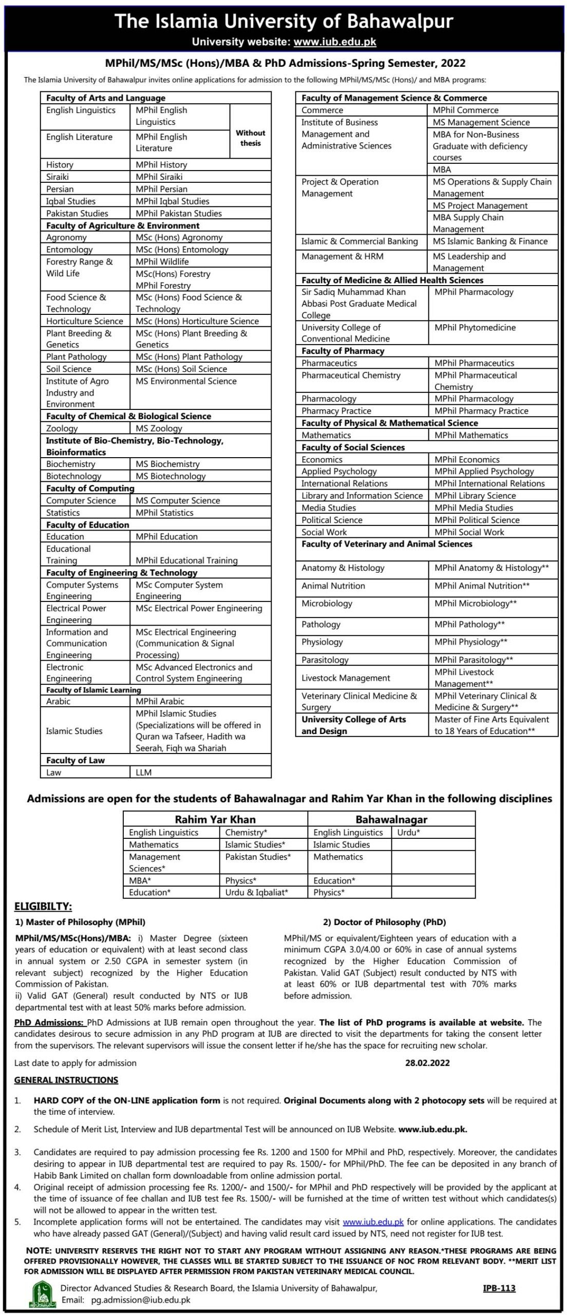 AdmissionsAdmission Open in Islamia University Bahawalpur 2022 5 February 2022269FacebookTwitterPinterestWhatsApp Share to your communityShare