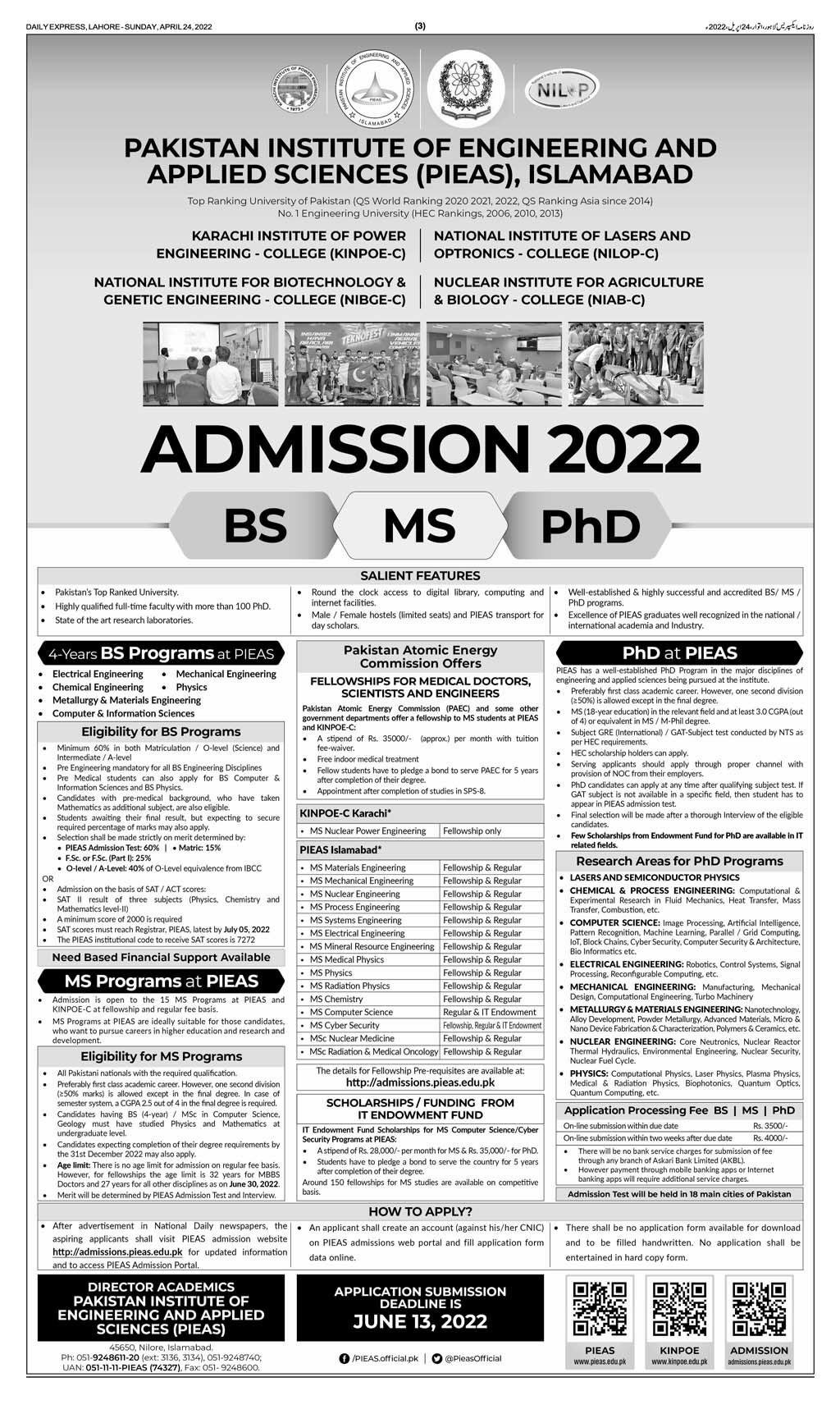 AdmissionsPIEAS Islamabad Admissions 2022 24 April 2022326FacebookTwitterPinterestWhatsApp Share to your communityShare