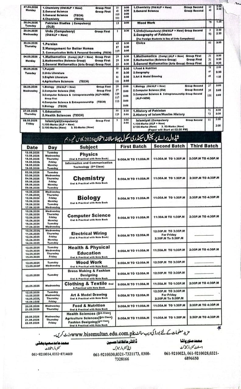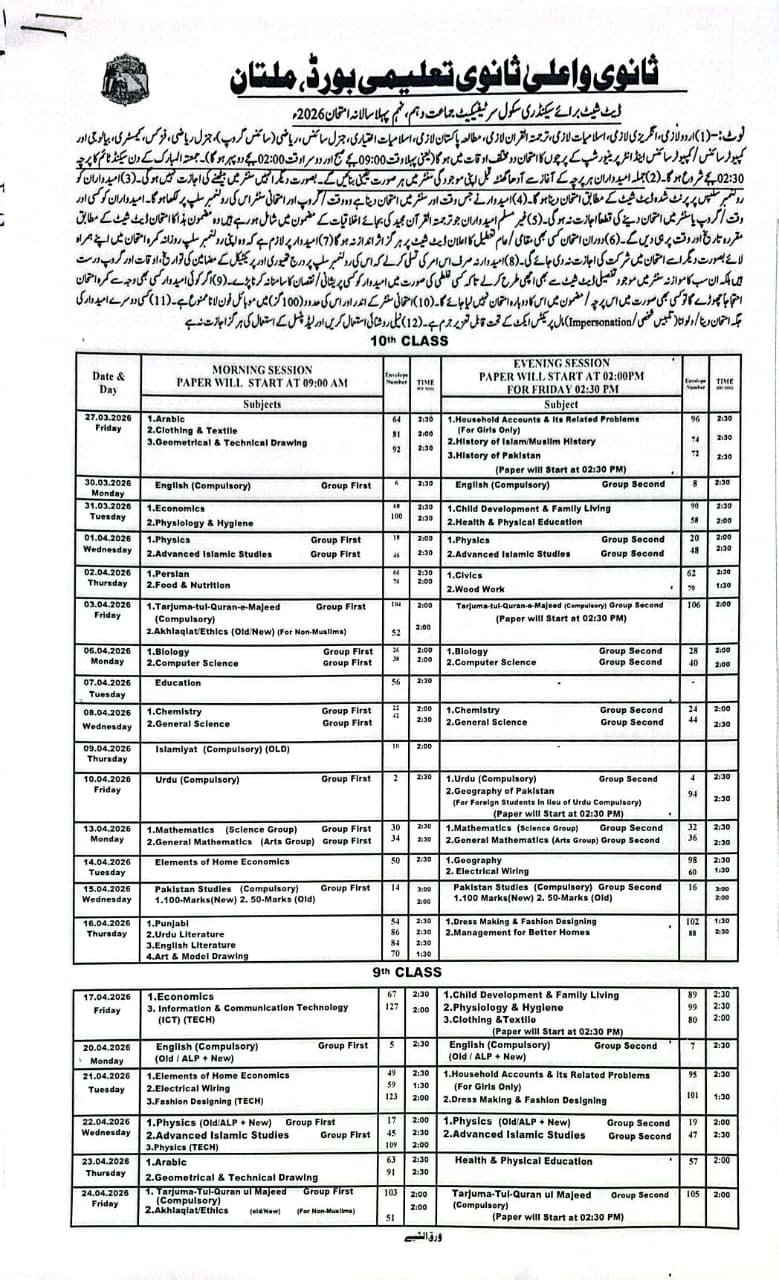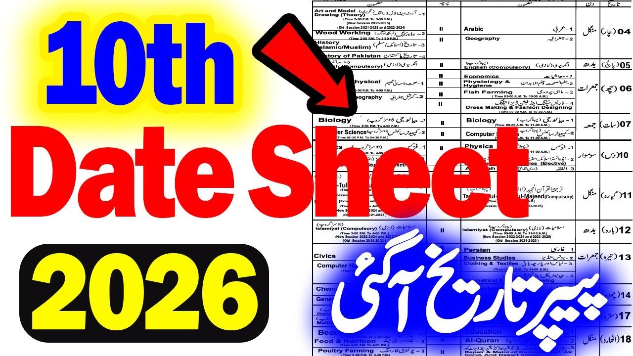 Date Sheet SSC-II (10th) All BISE Punjab 2026