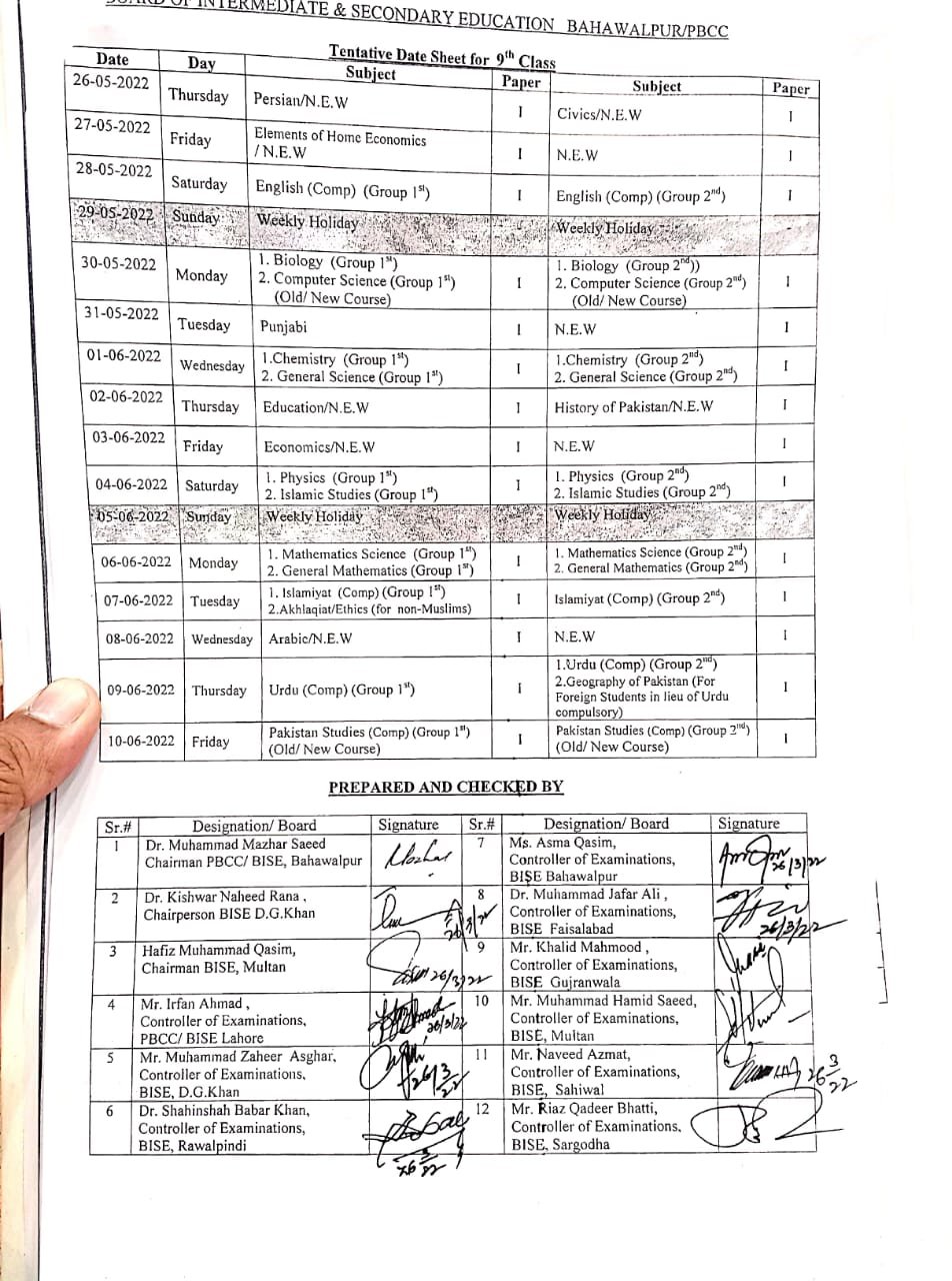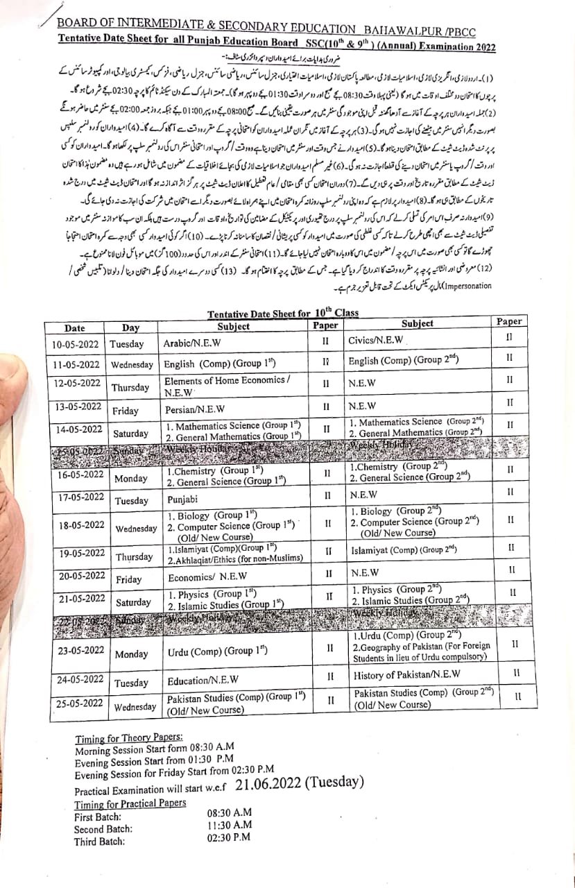 Date SheetsDate Sheet SSC Part-II(10TH) 2022 27 March 2022245FacebookTwitterPinterestWhatsApp Share to your communityShare