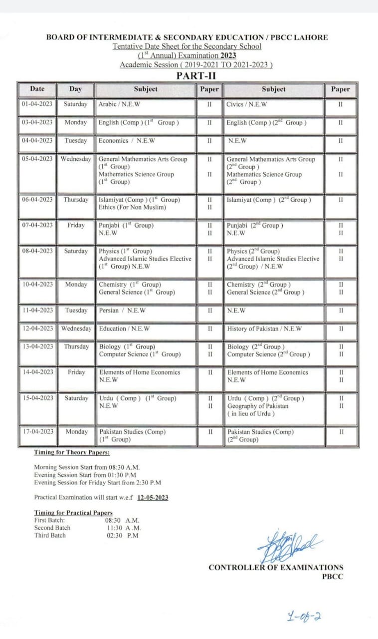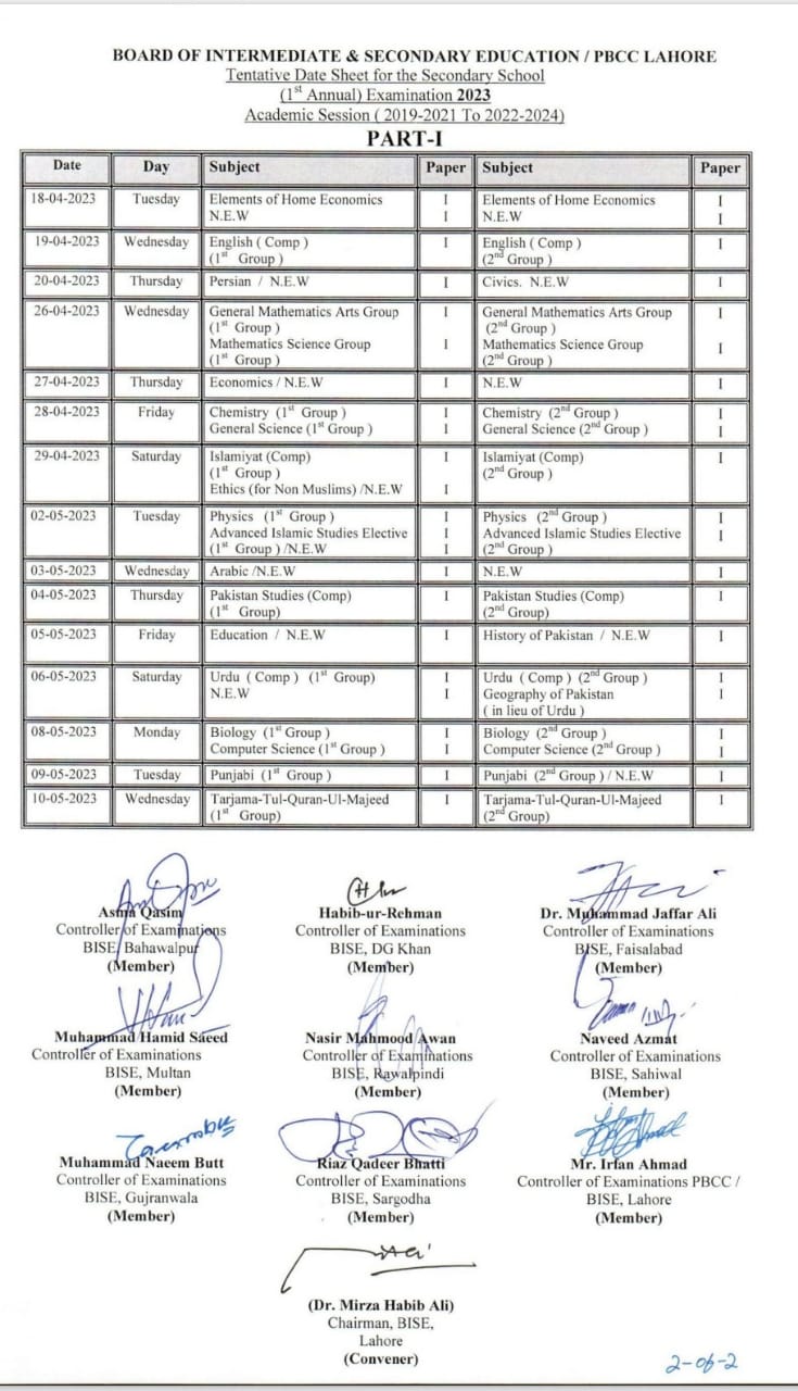 Date SheetsDate Sheet 9Th & 10Th 2023 All BISE Punjab 24 February 2023329FacebookTwitterPinterestWhatsApp BISE Date Sheet 10Th 2023BISE Date Sheet 9Th 2023Share to your communityShare