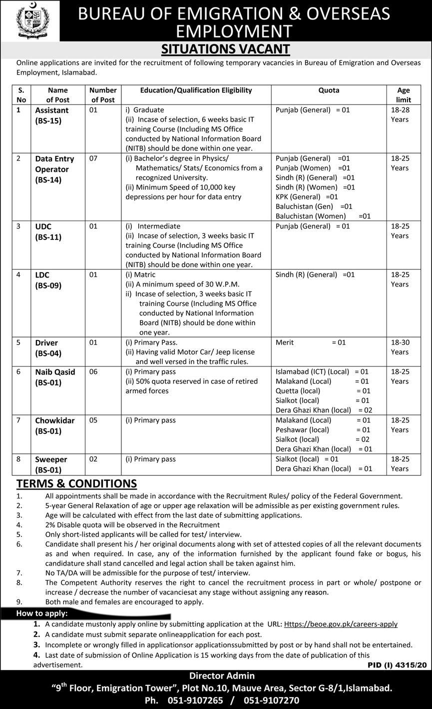JobsJobs in Bureau of Emigration & Overseas Employment Islamabad 14 February 2021463FacebookTwitterPinterestWhatsApp Share to your communityShare
