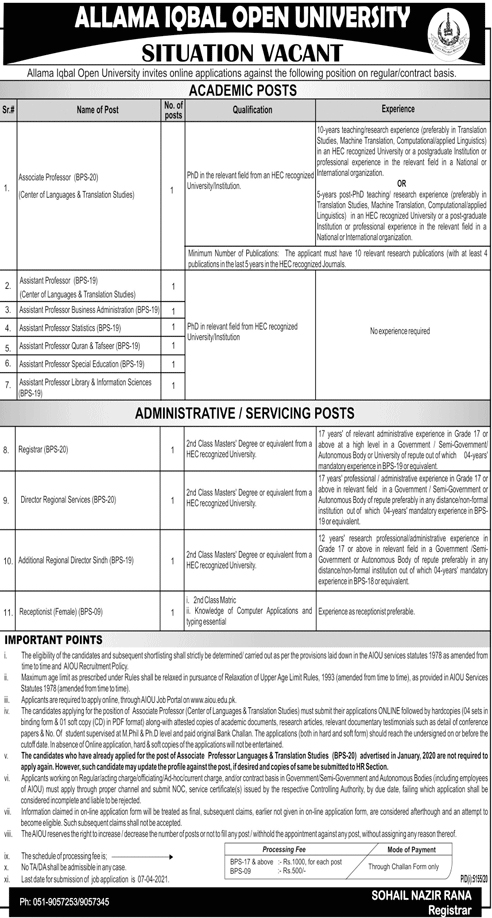 JobsAIOU Academic Vacancies March 2021 Announced 21 March 2021585FacebookTwitterPinterestWhatsApp Share to your communityShare