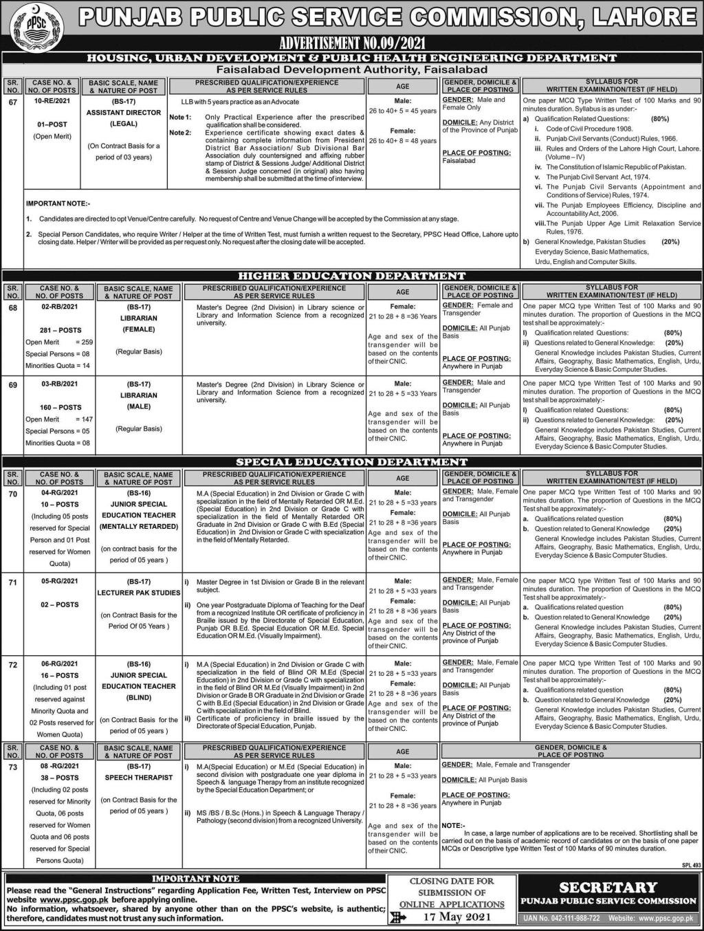 JobsLibrarians ,Teaching and Assistant Directors Jobs by PPSC 2 May 2021700FacebookTwitterPinterestWhatsApp Share to your communityShare