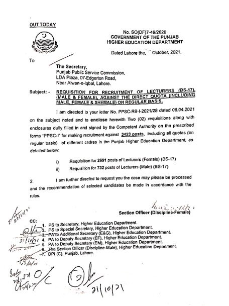 Lecturer Jobs in Punjab Higher Education Department 2021