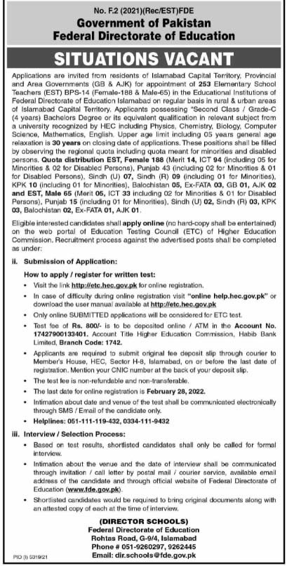 Teaching Job Opportunity in Federal Schools