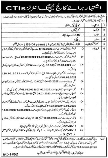 JobsCTI’s Jobs in Government Colleges of Punjab 2022 10 February 2022296FacebookTwitterPinterestWhatsApp Share to your communityShare