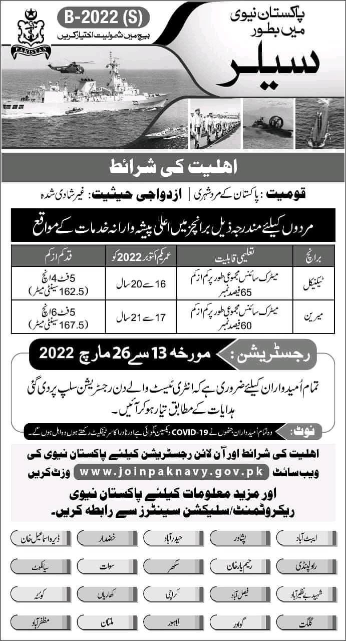 JobsJoin Pakistan Navy as A Sailor 2022 13 March 2022291FacebookTwitterPinterestWhatsApp Share to your communityShare