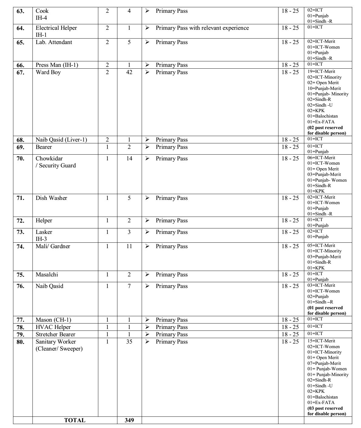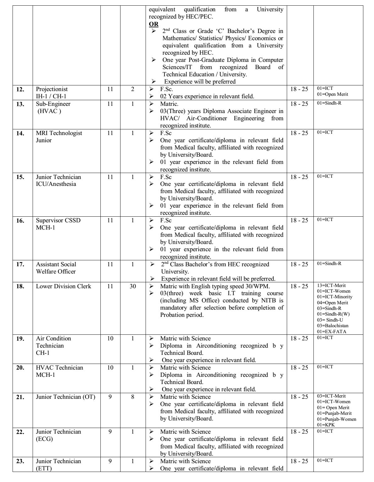 Pakistan Institute of Medical Science (PIMS) Jobs Grade 1-15