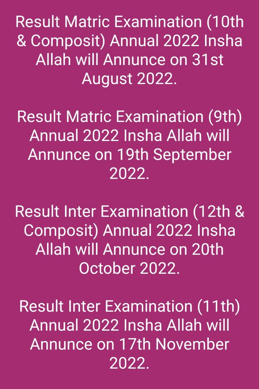 ResultFinal Dates of Results 9Th To 12Th All BISE Punjab & AJK 17 August 2022271FacebookTwitterPinterestWhatsApp Share to your communityShare